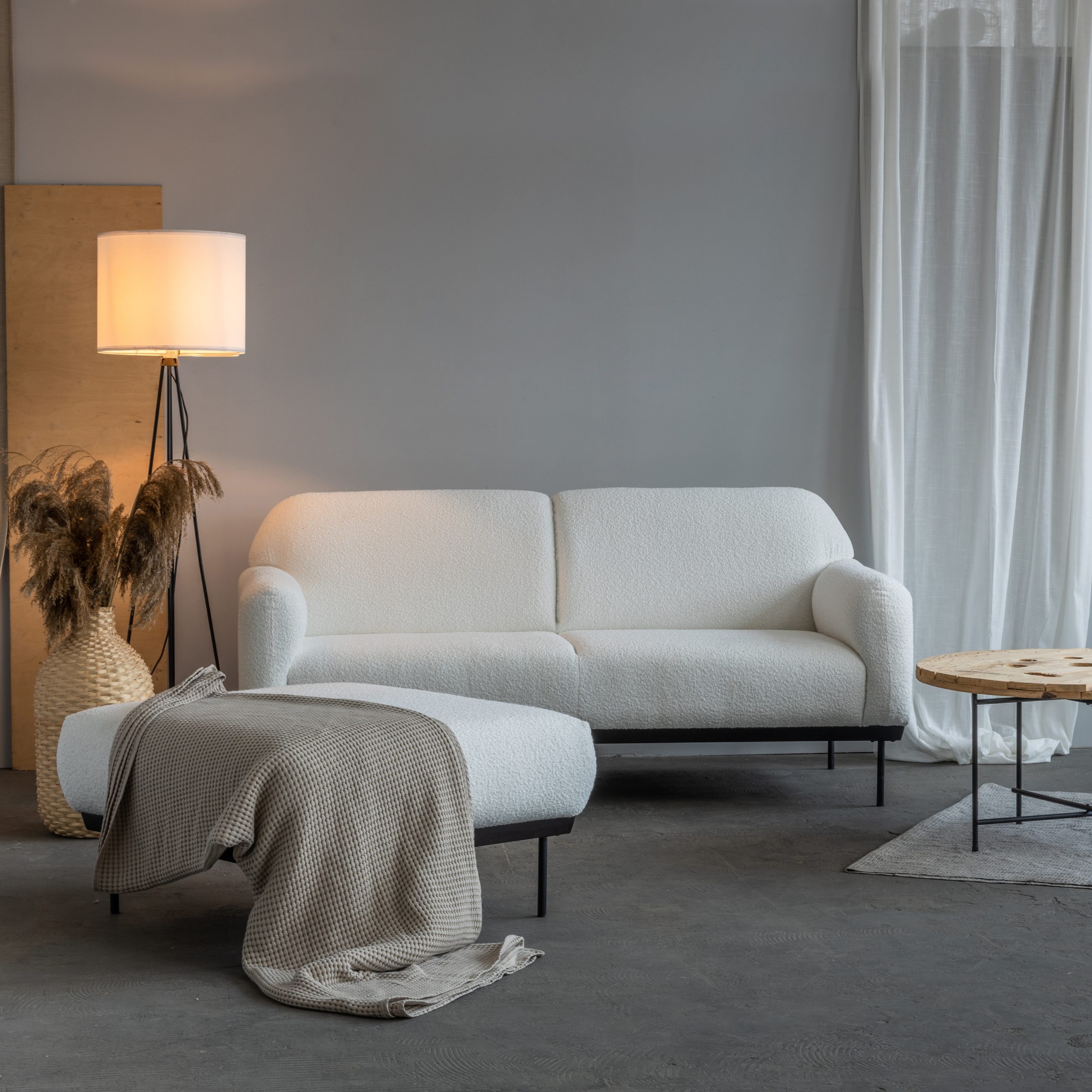 Model ten  nowocześnie odświeży wnętrze Twojego salonu i nada mu przytulny klimat. Ponadto dzięki możliwości wyboru koloru spośród szerokiej gamy kolorów tkaniny boucle bez problemu dopasujesz go do swojego wnętrza.